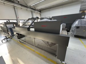 Einfach zu bedienende Winkelschweißmaschine, kombiniert mit Schrumpftunnel. Besonders robuste Ausführung für industriellen Einsatz. Schweißrahmenabmessungen 800 x 600 mm. Bewährte Impulsschweißtechnik mit teflonisiertem Trennschweißdraht für absolut geruchsfreie Arbeitsweise.